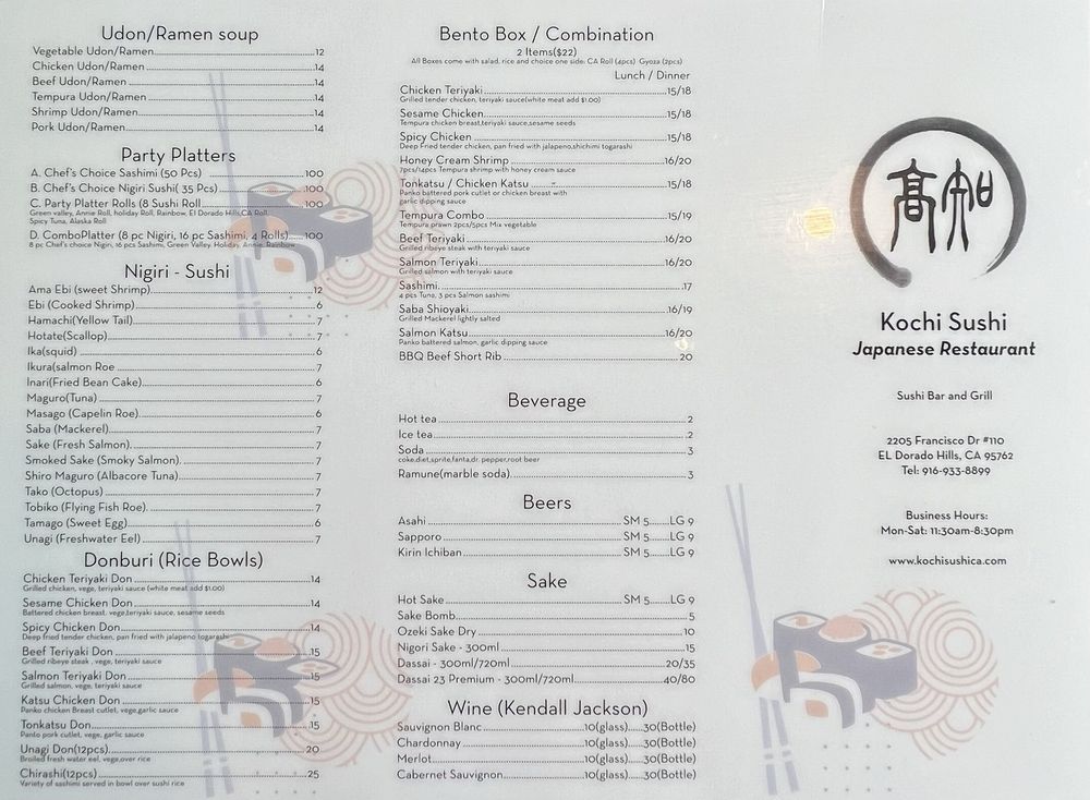 Welcome to Kochi Sushi, where the art of Japanese cuisine comes alive in El Dorado Hills. Located at 2205 Francisco Dr #110, this hidden gem offers a wide array of fresh, delectable dishes that are sure to delight your palate.